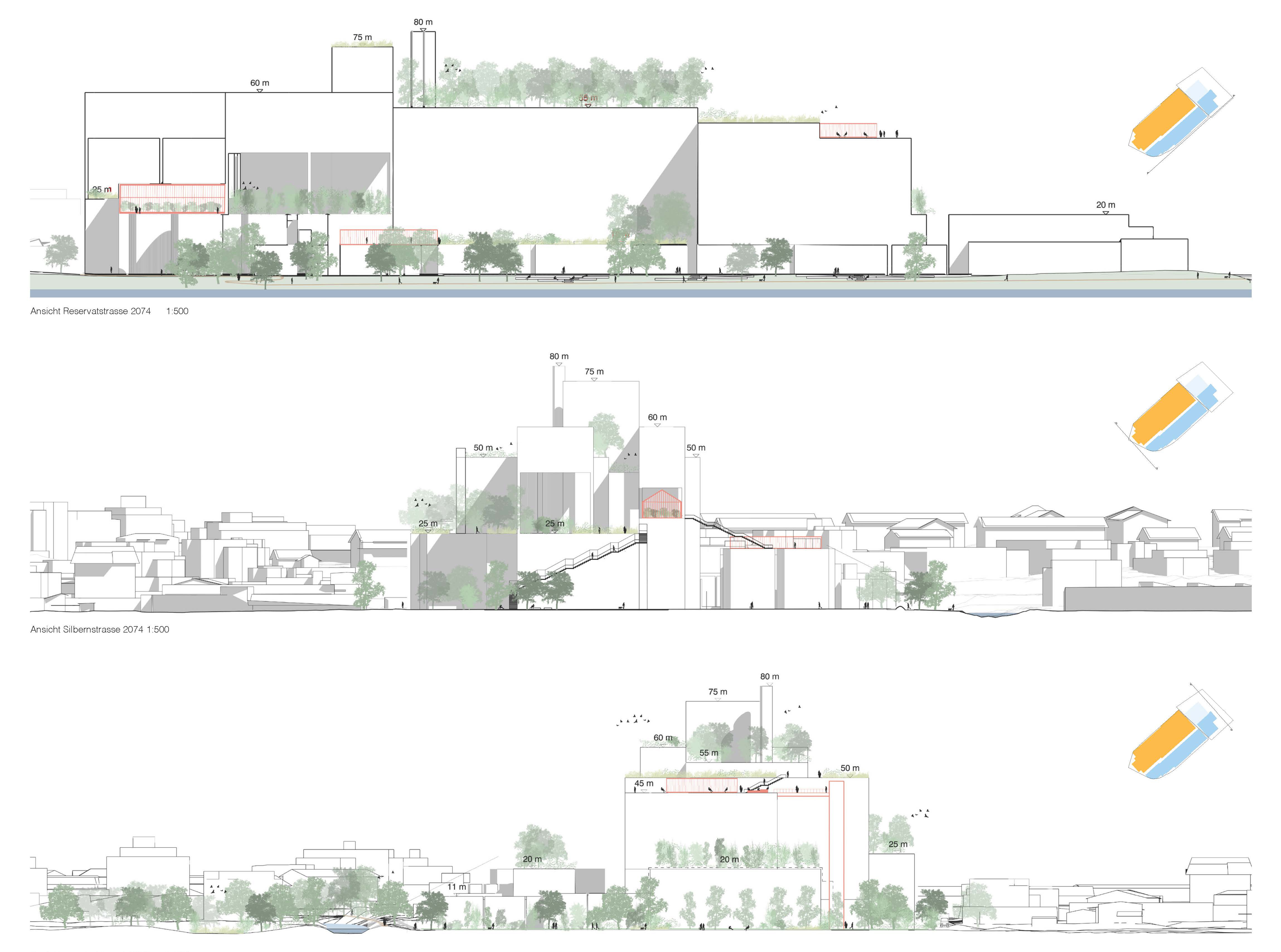 This core principle reveals itself both in the design of the building and the design of the surrounding landscape. By densifying the buildings and opening up maximum spaces for ecological integrity, the architectural approach enables a new kind of landscape typology, one that prioritizes habitats for birds and encourages ideal conditions for endemic plant communities of the region, while also enabling the public to experience this landscape. Both within the building and in the new adjacent park space as well as Antoniloch, the park negotiates between ‘nature’ and ‘culture’, by creating moments of contrast and connection between the urban function of water cleaning and energy production and the ecological function of the Aaue. By retaining former structures of the plant in the landscape and the architectural articulation of the buildings as open machines, the garden is a visible, active conversation between the landscape of the river and that of the city. By spatializing this conversation, Limeco can have a key position in one of the biggest questions of the 21st century: how will we share the planet with other living things?